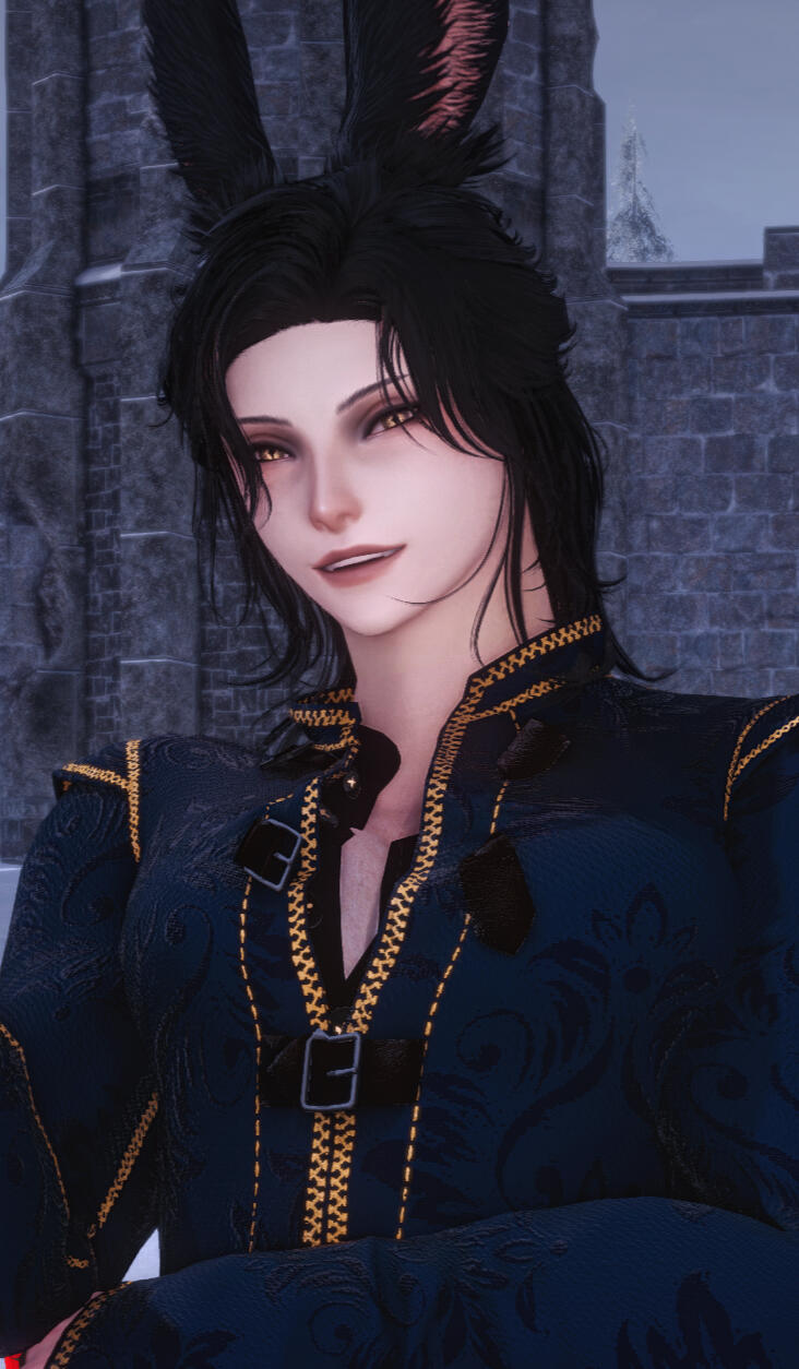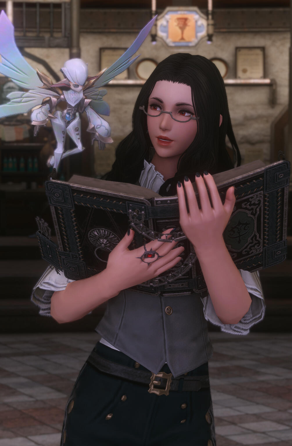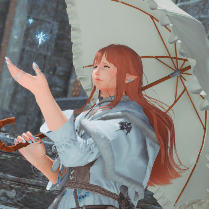 Despite having been born in Ishgard, Emi didn’t get to grow up there. Born frail, she spent most of her childhood squared away in her room, unable to venture to the world beyond; all at the demand of her mother. After an attack in the markets left Emi without a voice Aralise no longer had a daughter which in turn found the frail girl able to pursue avenues in her own interests. Emi was able to devote a large portion of her youth to such magical pursuits. Along this path Emi took a vow of peace, having heard tales of knights and such noteworthy individuals doing so, it seemed no different to her. Some have come to fear what might make the frail women drop such devotions, but for the moment, she remains adamant in that vow.Emi’s return to Ishgard was a frightful one, having soon learned the measure of slander her mother had invoked. This uphill battle wasn’t one she was prepared for and she had almost given up hope, were it not for a Temple Knight with a wide net to cast as a means to aid her endeavors. His word carried far and she soon had all that she needed and more. Though fate would take an interesting turn in the cycles to follow when a rather infamous dragoon had chanced upon her path.The man’s temper and will to use it were legendary in most circles but Emi remained dedicated, providing care where it was needed and found his methods returned in kind. It soon became evident to everyone around them, except the two, that favor had been found, she taking his scarred heart and he with her meek airs, meeting in the middle to make better versions of each other where they now share many smiles as husband and wife.